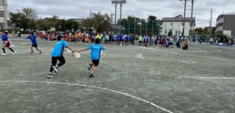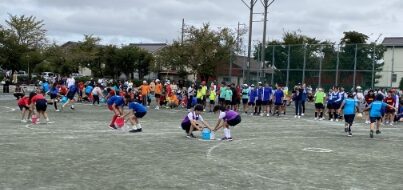今伊勢小学校運動場にて、スポーツを楽しみながら防災を学ぶ