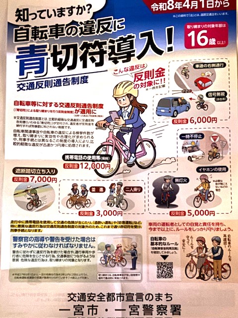 ◎令和8年4月から自転車違反に青切符導入の件