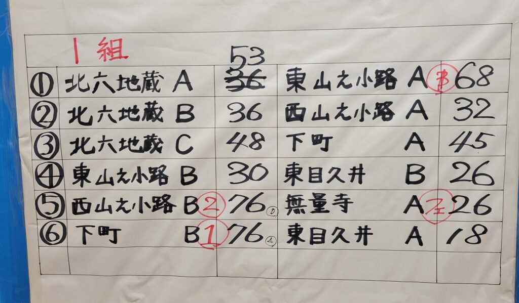 1組 優勝 下町B 2位 西山之小路B