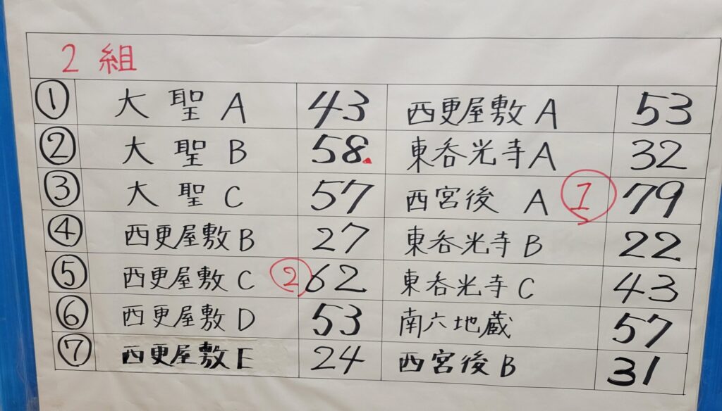 2組 優勝 西宮後A 2位 西更屋敷C